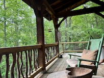 A Laurel Haven, with big porches and a log cabin feel. Fireplace.