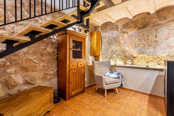 The La Bodega apartment is located in Ademuz and is perfect for an unforgettable holiday with your loved ones. Spread over two floors, the property features a living/sleeping area, a well-equipped kitchen, and one bathroom, accommodating 2 to 3 guests. Additional amenities include high-speed Wi-Fi (suitable for video calls), TV, fan, and washer/dryer. Please note, there is no air conditioning. The main bed, extra bed, and bathroom are all on the upper level, making it ideal for families with young children, as both sleeping areas are not separated by a door.