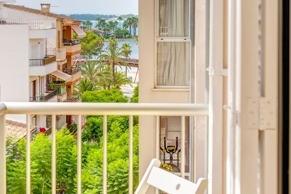 In Puerto de Alcudia, the holiday home Can Jaume is located just a short walk from the beautiful port. Boasting a sea view, the apartment is located on the 4th floor (accessible via lift) and stylishly decorated to give a modern feel. It consists of a living/dining room, a well-equipped kitchen with a dishwasher, 2 bedrooms (one with 2 single beds) as well as 2 bathrooms. The property can therefore accommodate 4 people. Additional amenities include Wi-Fi, air conditioning (in the living room and in the hallway in front the bedrooms), a washing machine, a baby cot and a highchair. Your private furnished balcony invites you to start the day with a hot cup of coffee while you admire the view of the surrounding greenery and of the sea. Due to its excellent location in the Port of Alcudia, there are shops, bars, restaurants just outside. Even so, the flat is very quiet and peaceful, as the windows and doors are double glazed and it is perfectly soundproofed. The Alcudia beach is only a 3 minute walk from the property and the Hidropark water park is a 27 minute walk or a 6 minute drive (2,9 km). Palma de Mallorca Airport (62.2 km) can be reached in 44 minutes by car.