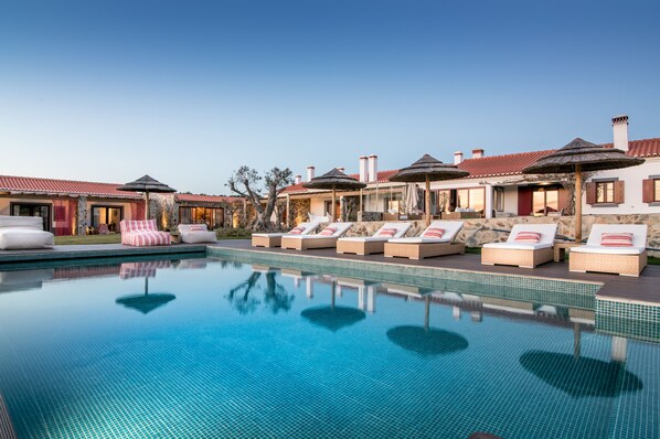 Travelers find peaceful natural surroundings at Monte do Cardal, where days begin with regional breakfast specialties and end with relaxation at the rooftop pool
