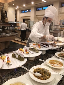 Stay away from this place. They turn off the air conditioning in dining hall and lobby and hall ways and all other common areas in July!!!! You feel like like you are in hell trying to survive on sweets and fresh fruit because their food is so tasteless and unprofessionally prepared. Eggs are either undercooked or ruined and burnt. No seasoning other than salt and even that is not balanced. It is either too salty or not at all. Baklavas all tasted the same just came in different shapes. No rose water no cardamom no cinnamon no butter. Half the buffet is olives , picked veggies, leftovers of the day before mixed into dips and stuffed bite size things you could not figure out . Theme nights were a joke. For example: Asian night consisted of red colored Chinese themed decorations and table cloths while serving taco that did not taste like taco, what people called sushi (but was really California rolls with a long line that youâd rather skip in that heat). If this was a restaurant somewhere in the city, it would be a place weâd never choose to dine in. Imagine being stuck in a place with such quality of food for a family vacation. Kids survived on sweets and fries. Not one decent hot meal with properly prepared chicken or beef option. No spicy options or any spicy sauce to use. Poor quality drinks, alcohol and non-alcoholic. Poor quality tea. And for latte/espresso/cappuccino there just these machines that mixed instant made stuff. Overall this was not an enjoyable experience.