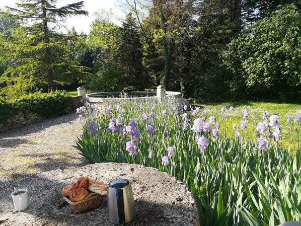 The charm of the property is also mainly due to its path of multi-century plane trees, its superb swimming pool, its large park, its cute animals and its 2 beautiful fountains illuminated at night which are filled with life thanks to many fish, some frogs and lovely water lilies!