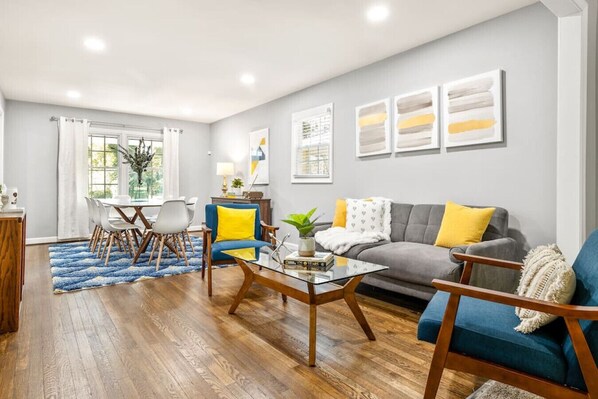 Our newly renovated home is perfect for groups and families looking for a comfortable and stylish stay in Atlanta. Our home features 3 living rooms, 2 dining areas, as well as a large patio and backyard for our guests to enjoy. The expertly designed space features lots of style, technology, and comfort that make our home unique. Even though our home is on a quiet and tree filled neighborhood, we are only 5-10 minutes from downtown, 20 minutes from the airport, and 10 min to Six Flags.