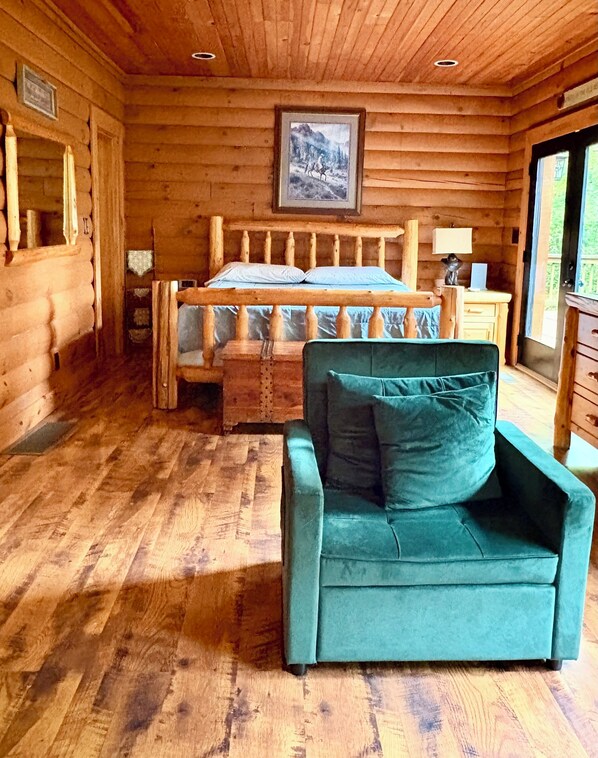 Suited for gatherings of all types, visiting the Bourbon Trail, The Ark and Creation Museum, church group retreats, weddings, girlfriend getaways, wildlife viewing and more. We offer a luxuriously appointed log cabin fitted with leather furniture, hand peeled log beds and furnishings, game/book/dvd library, trails, stocked fishing pond and much more.