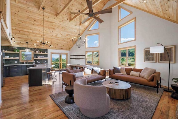 Step into our Banner Elk cabin and be greeted by a spacious, open layout designed to blend modern luxury with rustic mountain charm. Every detail of the interior has been thoughtfully crafted to create a warm and inviting atmosphere, perfect for your mountain getaway.