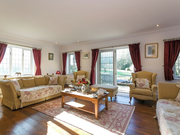 Living room: 42" Freeview TV, Netflix, Cinema Surround System, Amazon Echo, Patio Doors Leading To Garden