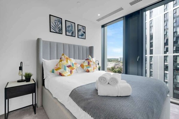 This brand new, luxury, two bedroom apartment is located right in the heart of Birmingham City Centre, Broad St. It is a rare gem! Fully furnished and comprising of a master ensuite, open plan living area and kitchen. This Mercian has all the amenities a traveler could ask for: