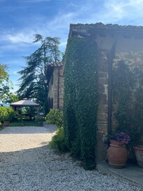 In the rolling hills of Tuscany, Villa Flora offers a tranquil retreat with a private pool and hot tub. Take in the scenic views while enjoying a barbecue on the patio or unwind with loved ones in this beautiful stone building, which can accommodate up to 14 people comfortably.