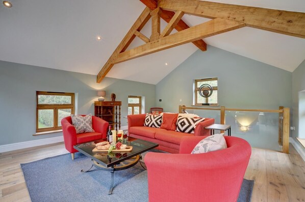 Nestled in a serene setting, The Barn offers a charming retreat with an open-plan kitchen/dining area and Super kingsize bedroom. Unwind in the living area with comfortable seating and Bi-fold doors opening onto the patio, complete with outdoor furniture. Enjoy Smart TVs, Bluetooth speakers, private parking, WiFi underfloor heating.