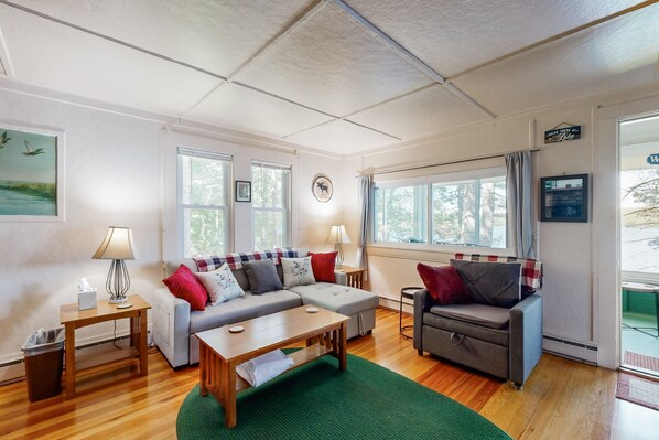 Lakefront cottage with dock, screened porch, & Island in Biscay Pond