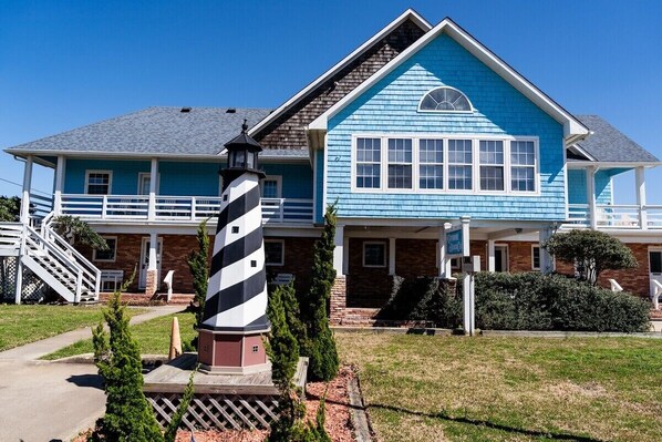 Gilbert offers a charming condotel suite experience near Cape Hatteras lighthouse. Unwind on the deck with ocean views, lounge chairs and tables, or relax in the common area featuring a foosball table, TV and comfy couches.