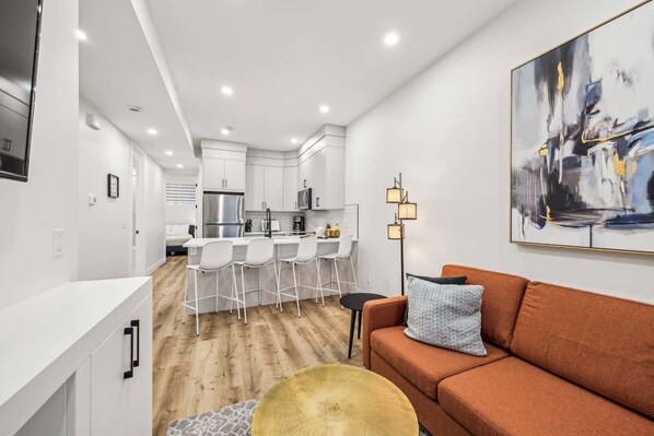 ✨ Bright & Modern Design: 9-ft ceilings and large windows fill the suite with natural light — you’ll forget you’re in a basement.