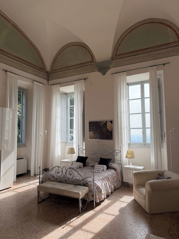 Located on the main floor of Villa Guinigi Dimora D'Epoca, Tintoretto is a very bright apartment, the enchanting view of the Lucchese countryside and its vineyards from the main room will enchant your awakening. This apartment can accommodate up to 5 people. Ideal for one or two couples and families.