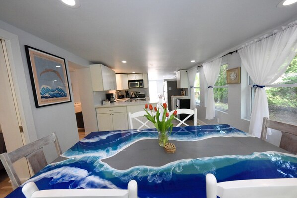 We had a wonderful first visit to Cape May for a family get-together, and this cottage was perfect for our needs. We loved the location, away from the crowds but a short drive or bike ride to the beaches and downtown area. The Nature preserve and Beach Plum farm were really close and we enjoyed visits to them. Rented bikes at Cape Island rentals in West Cape May. Went to Higbee Beach and did some hiking around and saw the concrete shipwreck, swam in the ocean at Cape May Beach, enjoyed area restaurants and shopping. Chilled out at the cottage, sitting in the secluded front deck area, playing games at the beautiful dining table, cooking out on the grill. Discovered Ostara coffeehouse and highly recommend!