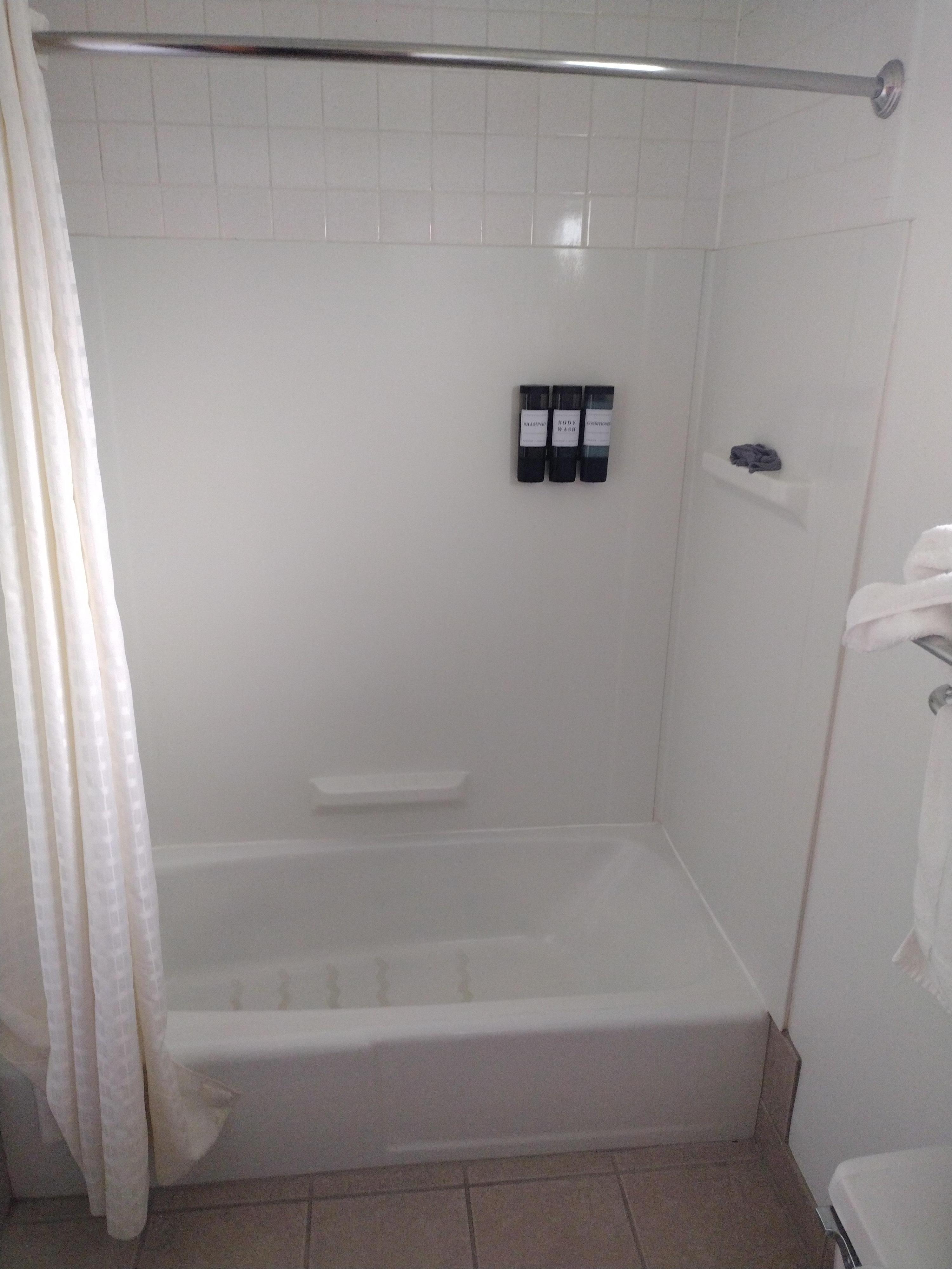 Bad: bath tub only allowed shower use. Needs new carpet.