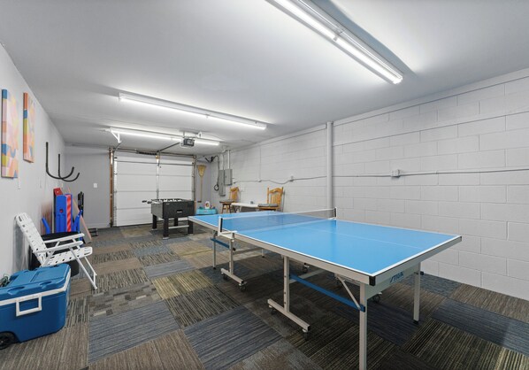 The lower level is where the fun and games begin! Here is where you'll find a game room, family room, and second kitchen. The perfect space for gamers, the lower level game room has the classic bean bag chair and comfy couch for an epic gaming experience!