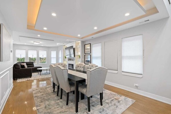 This spacious and one-of-a-kind home located in Chicago between Lakeview and Avondale will give your group all it needs! This beautifully renovated, elegant, and newly furnished home offers multiple areas to gather. The home also comes equipped with 2 fully stocked kitchens, a full bathroom on each level, along with two bedrooms on the second floor, two bedrooms on the first floor, and 3 bedrooms in the basement with 9 total beds. Downtown and O'Hare are both a quick 25 minutes away!