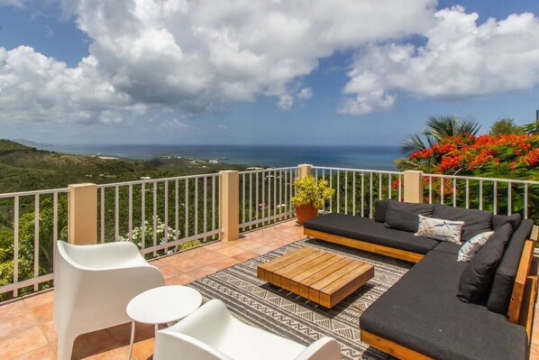 Step outside to discover your very own piece of paradise. Dragonfly Villa boasts an inviting infinity pool, where you can take refreshing dips while gazing out at the endless expanse of the Caribbean Sea. Grill up your favorite meals on the large barbecue, and savor them on one of the four expansive patio spaces, each offering mesmerizing ocean views. Whether you're basking in the sun or stargazing under the Caribbean night sky, these outdoor spaces are designed for relaxation and enjoyment.