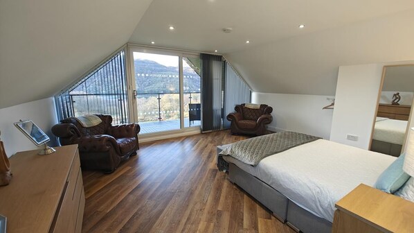 The outside space at this property is just as impressive as the interior. When you feel like lounging in the fresh air, dining alfresco or sitting back and watching the night sky, there’s ample seating as well as a charcoal BBQ. The sunroom offers entertainment in the form of a TV, pool table, table football, Table tennis, games console and gym equipment, while the piece de resistance is a huge hot tub where you can soak in the bubbles both in the sunshine or under the stars. The property has fishing rights on the Loch There is private parking for six cars.