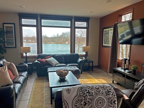 The house is recently-constructed (completed in 2015), built with premium materials and systems. At appx. 4,300sf, it has 8 bedrooms, 3½ baths and enough beds to sleep 20 (see plans in photo section). Our kitchen has large areas granite countertop, allowing many participants in food preparation. We have both a large and a small refrigerator, a double-oven, a microwave, a dishwasher, ample cabinets and a walk-in pantry. We have a large dining table as well as folding picnic tables and an umbrella table on the deck (which overlook the lake). There are areas to sit & talk on every level. The lower level has a rec room equipped with both a ping-pong and a pool table. This room opens thru 2 sliding doors onto a patio (which also overlooks the lake). A TV room on the upper level is great for kids watching late-night movies.