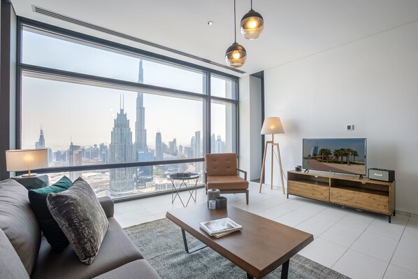 This furnished apartment is located in Dubai's International Financial Centre (DIFC), a commercial destination and residential community with art galleries and fine-dining restaurants.