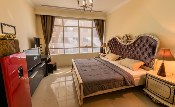 Experience the best of Dubai Marina from this elegant Master room, with beautiful views and high-speed internet. Enjoy daily cleaning services for common areas in a quiet and clean environment, ideal for female guests. The tram is conveniently located beside the tower, while the metro is just seven minutes away.