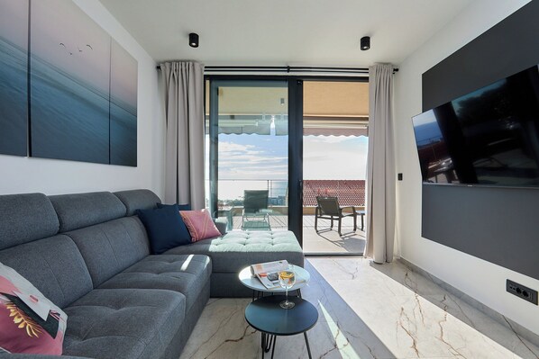 Step onto the private balcony with a hot tub and be treated to panoramic views of the Adriatic Sea and the surrounding landscapes. The balcony serves as an ideal spot to savor your morning coffee while enjoying the invigorating sea breeze or to unwind with a glass of wine as the sun sets over the horizon.