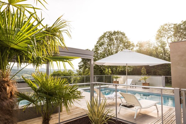 Family-friendly villa with an outdoor pool and a hot tub