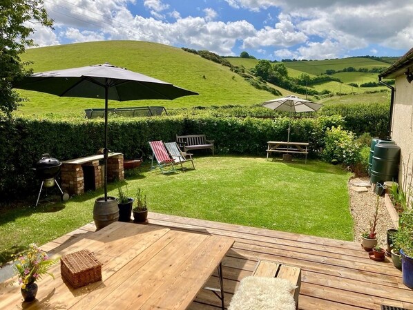 The views from the cottage are seen from every room, with stunning rolling hills and farmland in every direction. There is not another house to be seen, except our direct neighbours who are lovely. Ideal for families getting together to explore all that Devon has to offer, from local walks around the farmland and train line, for walking on Dartmoor or the South West Coast Path, cycling in the Teign Valley, kayaking the rivers, Go Ape at nearby Haldon Forest Park, or spending a day on the many local beaches or the moor.