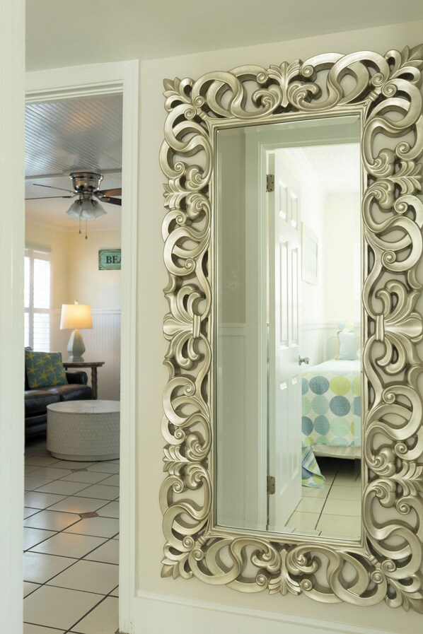 The cottage we are advertising and scheduling here is the SANDSHACK listing #4086494, and is a 2 BR / 1 bath just an easy 2 minute walk to the beach. It is at ground level and you will be greeted by the Folly Mermaid mural on the wall outside the front door to remind you where you need to be. You will have the biggest yard on our property and it is fully fenced for your exclusive use to hang out and feel the morning sunshine with your coffee, or relax in the shade after a long day in the sun. It has its own outdoor shower to rinse the sand from your toes and the sunscreen from your back. The yard is great for little kids to play in and be fully contained. And.. you’ve got your own gas grill to fire up and feed your brood after a fun-filled day at the beach. Inside there is lots of charm and beach feel decor at no extra charge as this unit has all new beach-style furnishings, and tile floors. The open floor plan to the kitchen is great for for casual gatherings after your day at the beach and has a separate door to access your back yard. A fully stocked kitchen awaits you with all the utensils etc., a full stove, microwave, and dishwasher. This 2 BR features a large master with king bed, local art work, and shabby chic charm. The second bedroom has 2 twin beds for the kids, or in a pinch you can roll them together for a cozy couple. The bathroom has all new tile and marble custom shower, and a true throne motif in play as you step up to the shower. Super clean no allergens, pet dander etc as we do not allow pets. Smart TV, WIFI , and off street parking for 1 vehicle included. Folly Beach makes no judgment on who you are or where you come from...just bring your flip flops and come as you are. Call me with any and all other questions as we have so much more to offer and tell you about our property.
