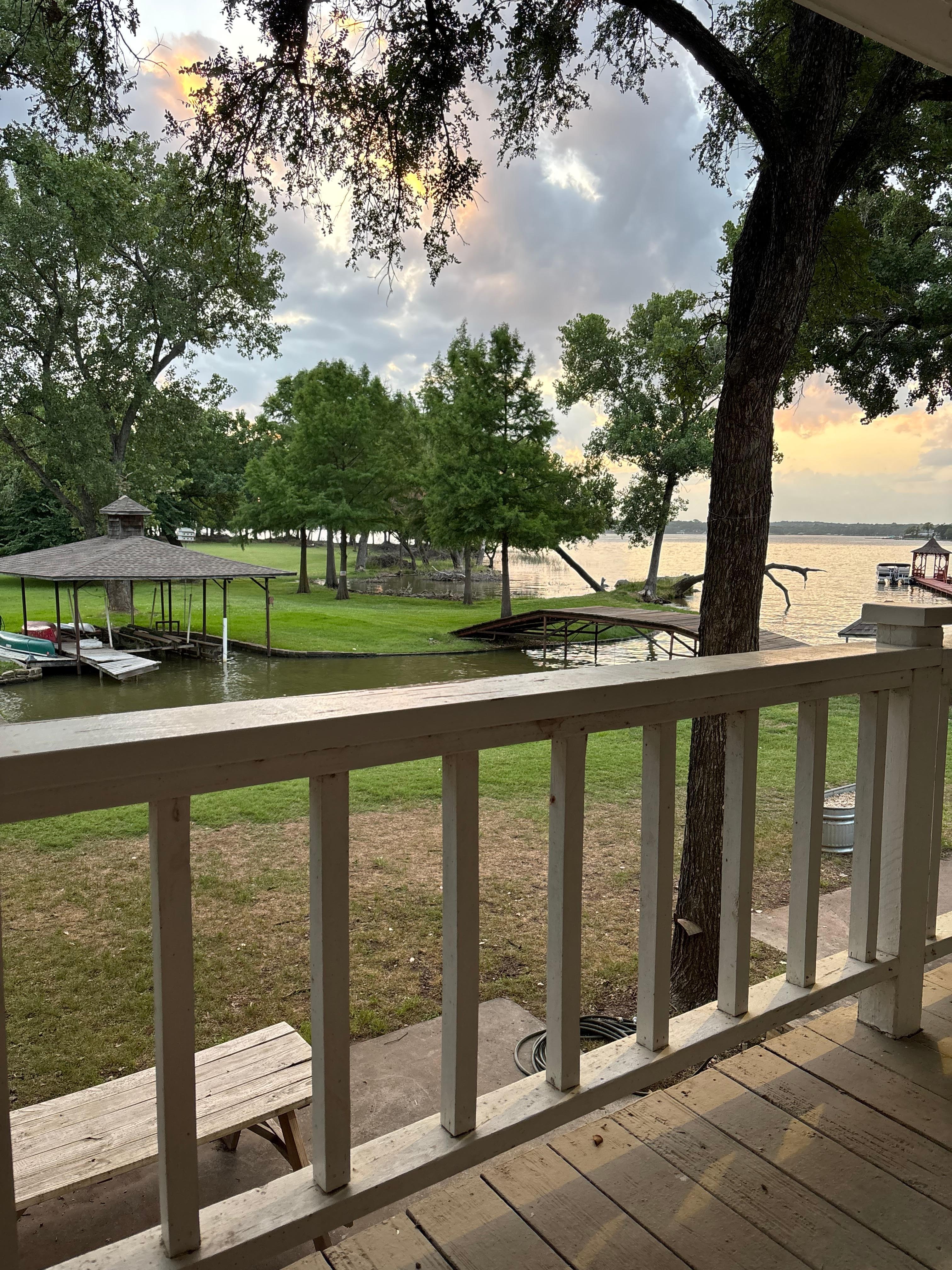 Welcome to Cottage Mariposa (The Butterfly). This beautiful estate sits on Eagle Mountain Lake on 4 acres with gorgeous views from every window. THE BEST FRONT PORCH SITTIN'! With 4 bedrooms, a kids room & 13 beds that can sleep up to 18 adults & 4 kids for a total of 22. Whether you just want to relax or have fun in the sun, fishing, boating, & just livin' lake life this is it! Lots of deer watching! Kayaks, games, & canoes available for use. 3 min to marina/restaurant. Weddings/events available w/approval