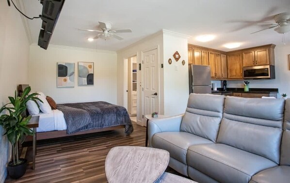 • Relaxing Living Area: Unwind on the comfortable sofa while watching your favorite shows on the flat-screen TV.