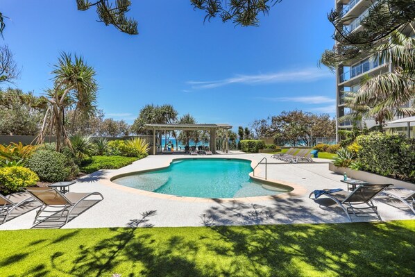 On beach with outdoor pool for sandy fun near Cavill Avenue
