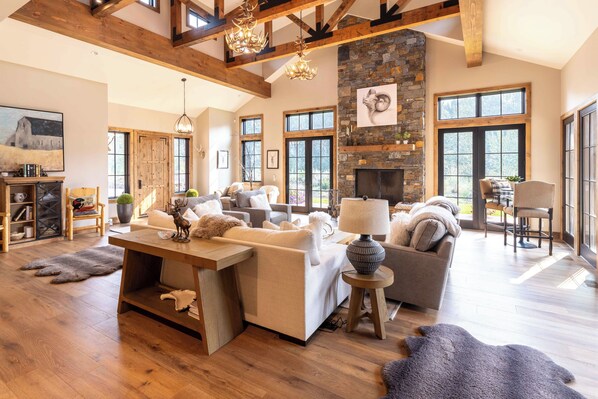 In the heart of Rainbow Bend, Sheepbend House offers a luxurious retreat that celebrates Sun Valley's natural beauty and culture. This Basque-inspired haven features a spacious living room with hand-cut stone fireplace, custom-made antler chandeliers, an elegant dining room and beautifully appointed kitchen. Nearby bike paths invite leisurely strolls while the ground floor boasts a sumptuous primary bedroom with an en-suite bathroom.