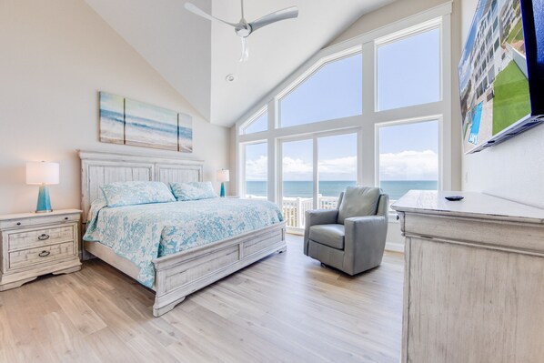Seven more master king bedrooms occupy the second level, five of which have access to an oceanfront deck to enjoy the spectacular views that come with it. Fix yourself a coffee or drink from the beverage bar located at the center of the hallway and enjoy a quiet respite in the sitting room featuring a poker/game table for six, two swivel recliners, and a Smart TV.