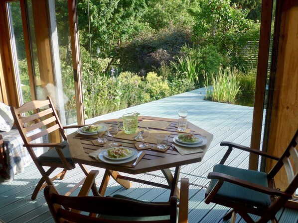 This really is a cottage for all seasons, fully equipped for all weathers. Ideal for singles, couples or a family. Whether relaxing in our glorious summer house overlooking the garden in the summer, to cuddling up on our reclining sofa in front of the wood burning stove in the cooler months, you will find all you need to make this a very special holiday.