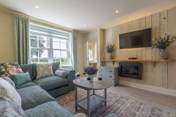 Open the door to Ashdale and you're greeted with a spacious boot room, leading into a fabulously stylish and well-equipped shaker-style painted kitchen with a farmhouse table and chairs. The sitting room is cosy and comfortable with a wall-mounted fire and huge squashy sofa to relax on, making it perfect for creating holiday togetherness. With french doors to the terrace, you can let the sunshine in. The owners have thought of everything and there is even a little study desk at the foot of the stairs if you have to keep in touch with the outside world whilst you are away. Ashdale has three beautifully-appointed bedrooms. The master bedroom has a fabulous boutique feel with large headboard and super king-size bed, pretty pom-pom edged curtains and plenty of storage. Plus of course it provides some gorgeous views of the marsh and sea. The second bedroom is decadent and has twin beds, whilst the third double bedroom is equally stylish. And with two bathrooms, it makes it easy for everyone to get up and out on a morning too.