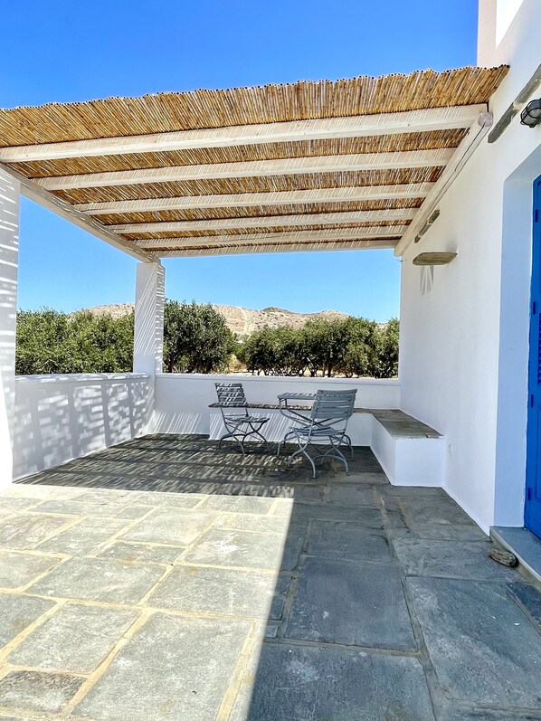 Nestled among olive trees, Ios Beach House offers a serene retreat with an amazing sea view from just 50mts away. Unwind in the tranquility of this typical Cycladic architecture beach house, where minimalist design meets natural beauty.