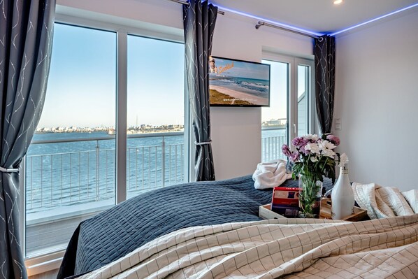 The Schleivilla Kapitän James Cook2 by Seeblick Ferien ORO, a jewel right on the water in the enchanting Baltic Sea resort of Olpenitz. This stunning semi-detached villa on Schleiufer 22 redefines luxury and offers an unparalleled experience for discerning travelers looking for something special. Experience the magic of the rising sun from your terrace and the romantic view of the sunset from the roof terrace with the Gosch Lounge 3.0 XXL beach chair, which offers a panoramic view in all directions. The Schleivilla Kapitän James Cook by Seeblick Ferien ORO extends over two floors. The master bedroom impresses with a waterbed and offers a breathtaking view of the marina. At the same time, the second bedroom with a box-spring bed reveals the beauty of the Schlei. An additional guest toilet on the ground floor provides additional comfort. The fully equipped designer kitchen delights amateur chefs with a variety of amenities, a Thermomix completes the ensemble, and as a special highlight, a fully automatic coffee machine without milk system is available - the vacation home is not only a visual masterpiece, but also technically well equipped. A 65” Smart TV in the living room, Smart TV in both bedrooms, Nintendo Wii U, Löwen Liga Dart HB8, free WiFi, Prime Video, Alexa, USB media player and a music system with WiFi / Bluetooth receiver provide entertainment. A lockable bicycle shed with charging facilities for e-bikes and a wall box for your e-car round off the offer.with our baked goods delivery service, we would like to offer you a relaxed and carefree vacation. No hassle, no queuing at the supermarket - instead, you can enjoy fresh baked goods every morning without having to leave your vacation home.