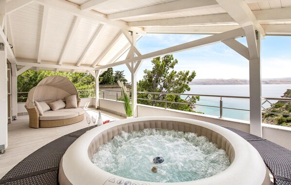 This beautiful holiday home is designed for an unforgettable holiday with your family or friends. On the ground floor there is a room and a spacious living room that leads to a covered terrace. Upstairs there are three bedrooms, two of which have access to the highest terrace. There is a jacuzzi where you can spend relaxing moments and enjoy beautiful panoramic views of the sea and neighbouring islands, as with other terraces.