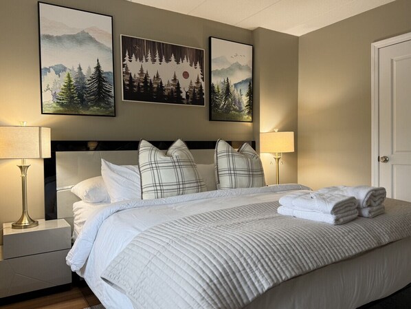 Step inside to discover a stylish interior adorned with modern furnishings and thoughtful touches. The master bedroom boasts a luxurious king-sized bed, while the second bedroom features a comfortable queen-sized bed, ensuring a restful night`s sleep after a day of adventure on the slopes.