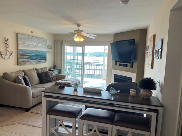 Enjoy a Relaxing Ozarks Getaway! Spacious 2 bedroom 2 bath lake front Condo . This newly updated condo features new smart TVs in each room . Enjoy the electric fire place in the living room with a large screened in porch with lake views . Plan your families activities with boating , lounging pool side , or on the greens at the world class courses near by . Condo has a fully equipped kitchen or take a short 5 min drive to Bagnell Damn for dinning . We are off Horseshoe Bend / HH at mm 14 ! Very centrally located for shopping , dinning , family fun and so much more . Come and enjoy all that the Lake has to offer ! The Ridge Golf Course and The Cove Golf Courses are worth checking out if any activity is on the agenda, while those looking for area attractions can visit Sugar Creek Golf. The Cove Golf Course 3 mins / The Ridge Golf Course 4mins / Marty Byrdes 6 mins / Tucker Shuckers 6 mins / JJ Twigs 4 mins / Jb Hooks 4 mins / The Bend 1 min .