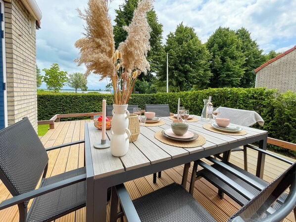 Lakefront vacation home in Langweer with patio