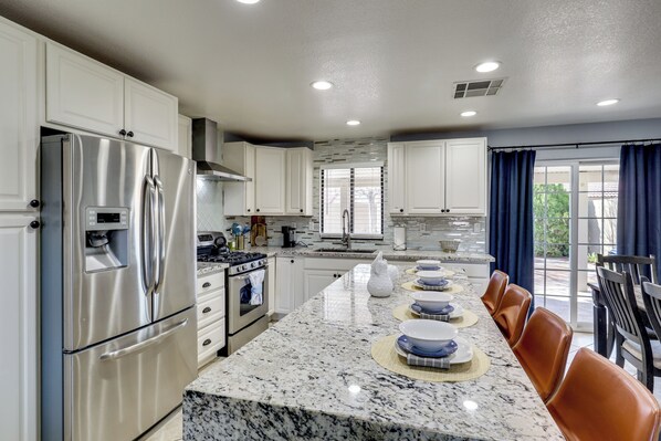 Fridge, microwave, stovetop, coffee/tea maker - Private Pool, Patio! Modern North Las Vegas Escape (Las Vegas)