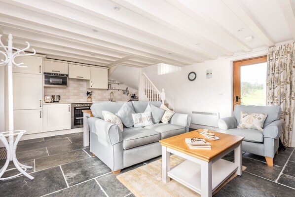 Experience - The Area...Within a 20 minute drive to the sandy beaches at Crackington Haven, Widemouth Bay and Bude, this freshly renovated 100 year old detached double glazed cottage is set to one side of the country lane and farm entrance in a peaceful rural location.Hallworthy 2 miles has a country pub and Marshgate 2.5 miles with its P.O store is the nearest village for your day to day needs. Wainhouse Corner 5 miles has a pub, garage and P.O store. The nearest beach is 7 miles away at Crackington Haven with the resort of Bude with its shops, restaurants, tennis courts and watersports is within a 30 minute drive. Trelash is on the Cornish Way cycle network and the south west coast path at Boscastle gives access to some dramatic coastal walks with Bodmin Moor providing many rugged scenic walks nearby. The historic houses & gardens at Pencarrow, Prideaux & Lanhydrock are all within a 40 minute drive. The coastal towns of Boscastle and Tintagel are 7 & 10 miles respectively and the picturesque harbour village of Port Isaac famous for Doc Martin is within a 30 minute drive.Stay - The Accommodation...Ideally situated to enjoy the dramatic north Cornish Coastline, rugged moorland and fishing villages. Over The Hedge offers comfortable and cosy accommodation year round. An enclosed porch and glazed door opens directly into the light and airy living room comprising the ground floor with slate flooring and rural views from the two windows. A modern well fitted kitchen is set to one side with dining furniture and comfortable lounge seating arranged before an attractive open stone fireplace with a woodburning stove and original clome oven.A winding carpeted staircase leads up to the first floor where you will find the attractive double bedroom with kingsize bed and dual aspect overlooking the garden to one side and surrounding countryside to the other. A door from the bedroom and landing gives access to the En-suite shower room W.C with hand basin and heated towel rail.From the living room a glazed door at the rear leads out to a paved patio and onto the tiered landscaped lawn bordered by a Cornish hedge on both sides and fruit trees. To one side the garden continues to the front paved patio and small lawn enclosed by trellis fencing. There is a gated drive to the side with parking for 1 car.Don't forget...- Sorry, this property does not accept pets.- First basket of logs complimentary.- Telephone can accept incoming calls only