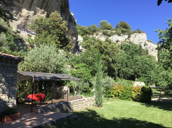 LA BAUMO 1, one of our two accommodations, is located in the Saint Gens Valley, known as “La Vallée Sainte”, a protected area. Despite its peaceful setting, culture, sports and markets are not far away: Isle-sur-la-Sorgue (with the 18-hole Saumane golf course) and Carpentras are 12 km away; Avignon (historic papal city), Orange (Roman amphitheatre) and Cavaillon are 30 km away; Aix-en-Provence is 45 km away; and Marseille by the sea is 100 km away.