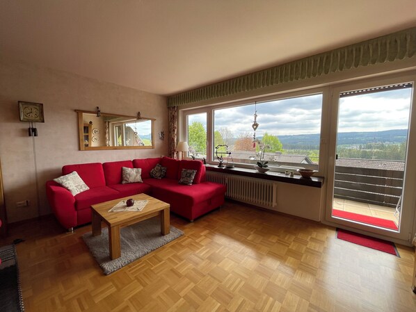 We had a lovely time staying in mrs Vanghel's apartment. Reception went smooth and check in was a breeze. The apartment has a wonderful view across the valley, has a great balcony where you can drink your morning coffee or watch the sunset on the Feldberg mountain. The master bedroom has a very comfortable king sized bed, lots of closet space, the bathroom is modern, the kitchen has all the amenities you need (oven, cooking hub, toaster, micro wave, two sorts of coffee machines) and everything is impeccably clean. As is the entire apartment ! The sitting room has a pull out couch big enough for two people. We found it slightly hard. The modern tv and soundsystem we did not use. The internet is fast and reliable. We used the downstairs swimming pool twice and it was great. Very clean, good temperature and big. The sauna was wonderful, as was the utility room where our boys enjoyed playing table tennis. The drive to Barental, where there is a Lidl and a superb breakfast caffee/bakery, is short. So is the drive to Feldberg. Word of advice, leave early in skiing season, because otherwise there will be no parking space left (arrive well before 9 am). Another short drive to Titisee, and you can swim at the lovely Badeparadies (discount with the Konus card). There are many more things to do in this beautiful, and quiet area, but we simply did not have enough time. Highly recommend this apartment, and the area.