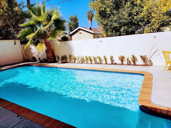 Refreshing pool to cool off and unwind. The pool and garden area are shared with the owner. Please see the photos.