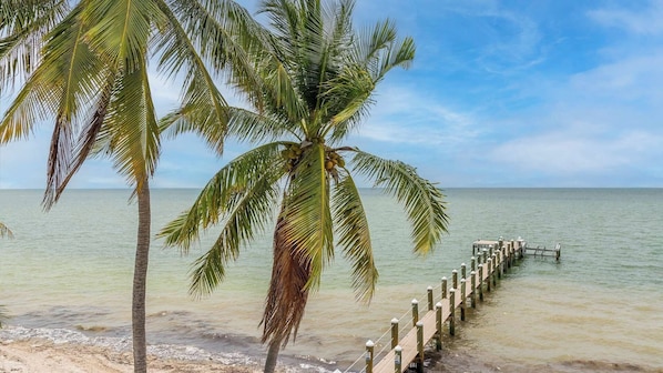 Oceanfront White Sand Beach Home with a dock for your boat and Ocean views from practically every room.