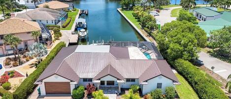 Our home has beautiful water views from the dining area, living room, family room, master bedroom and ~2,000 square feet of indoor living space with a bright, and a large screened lanai that offers complete privacy to the heated pool and hot tub with western exposure, plenty of sun! The house is located in a quiet neighborhood in the TigerTail beach oasis area!
